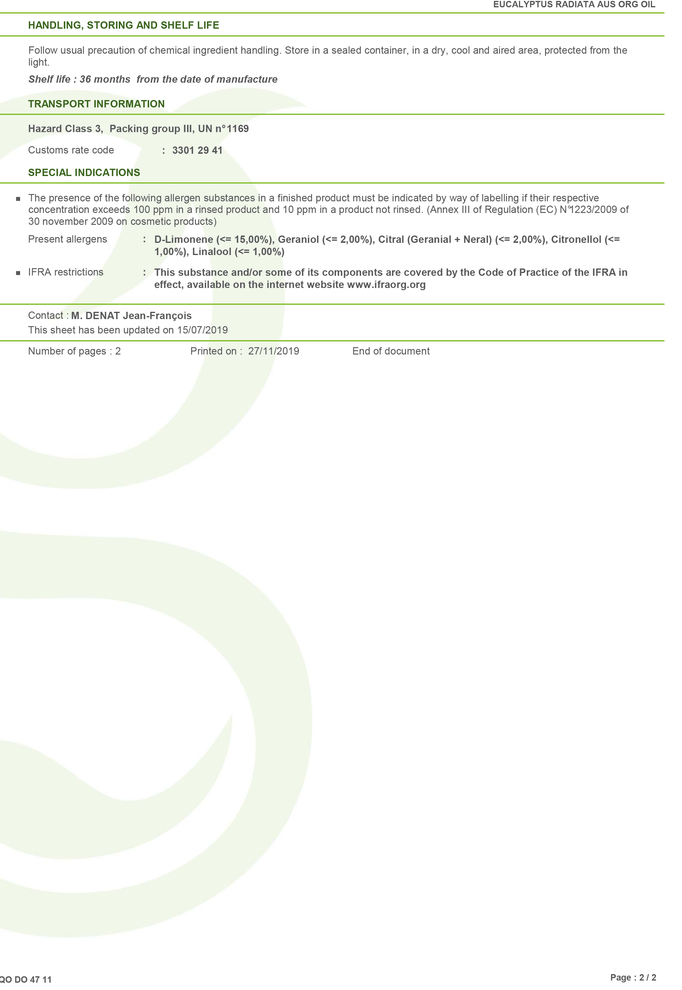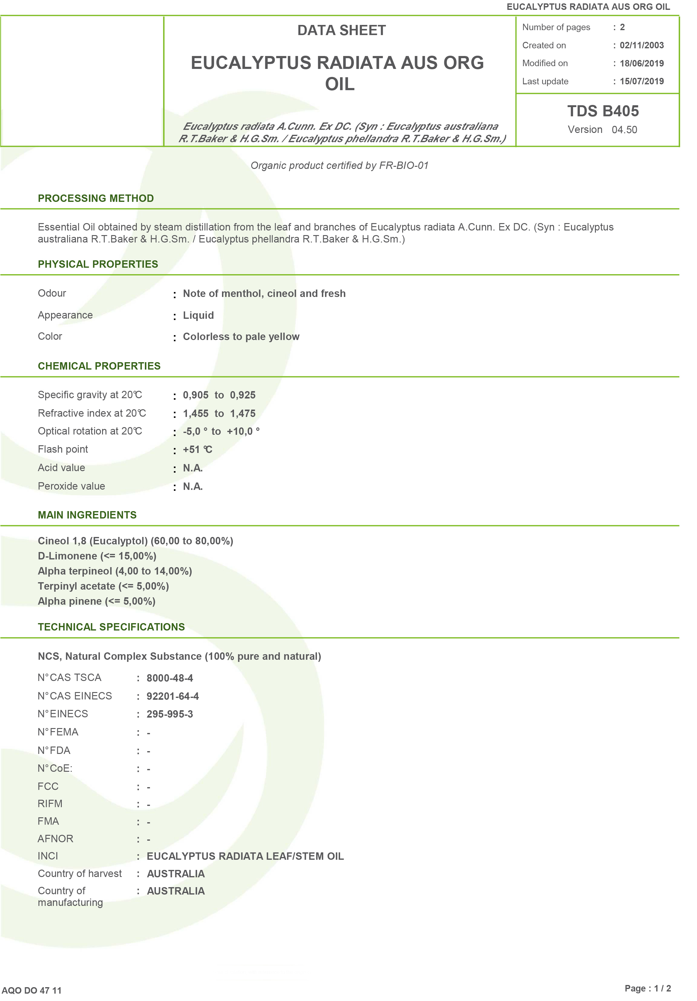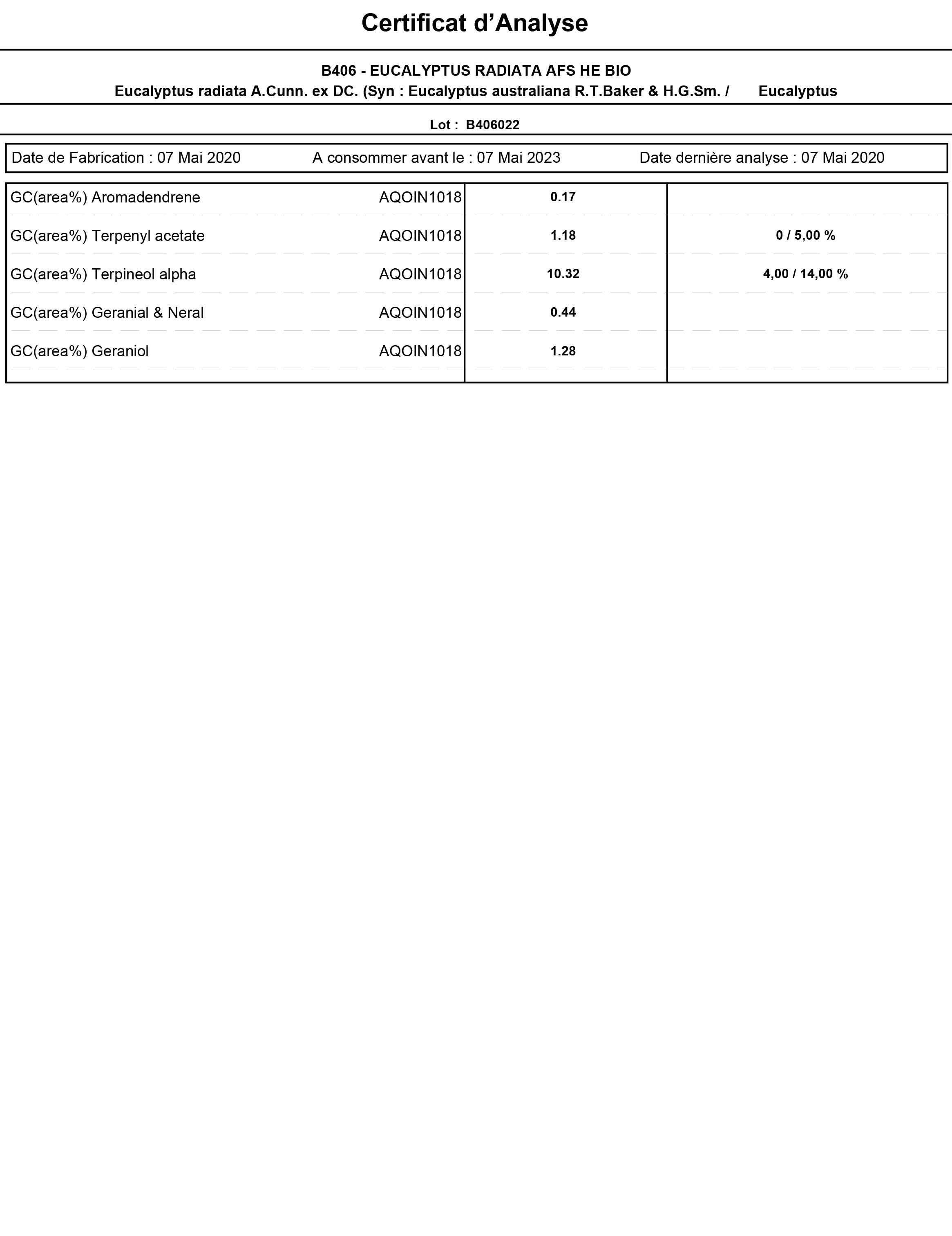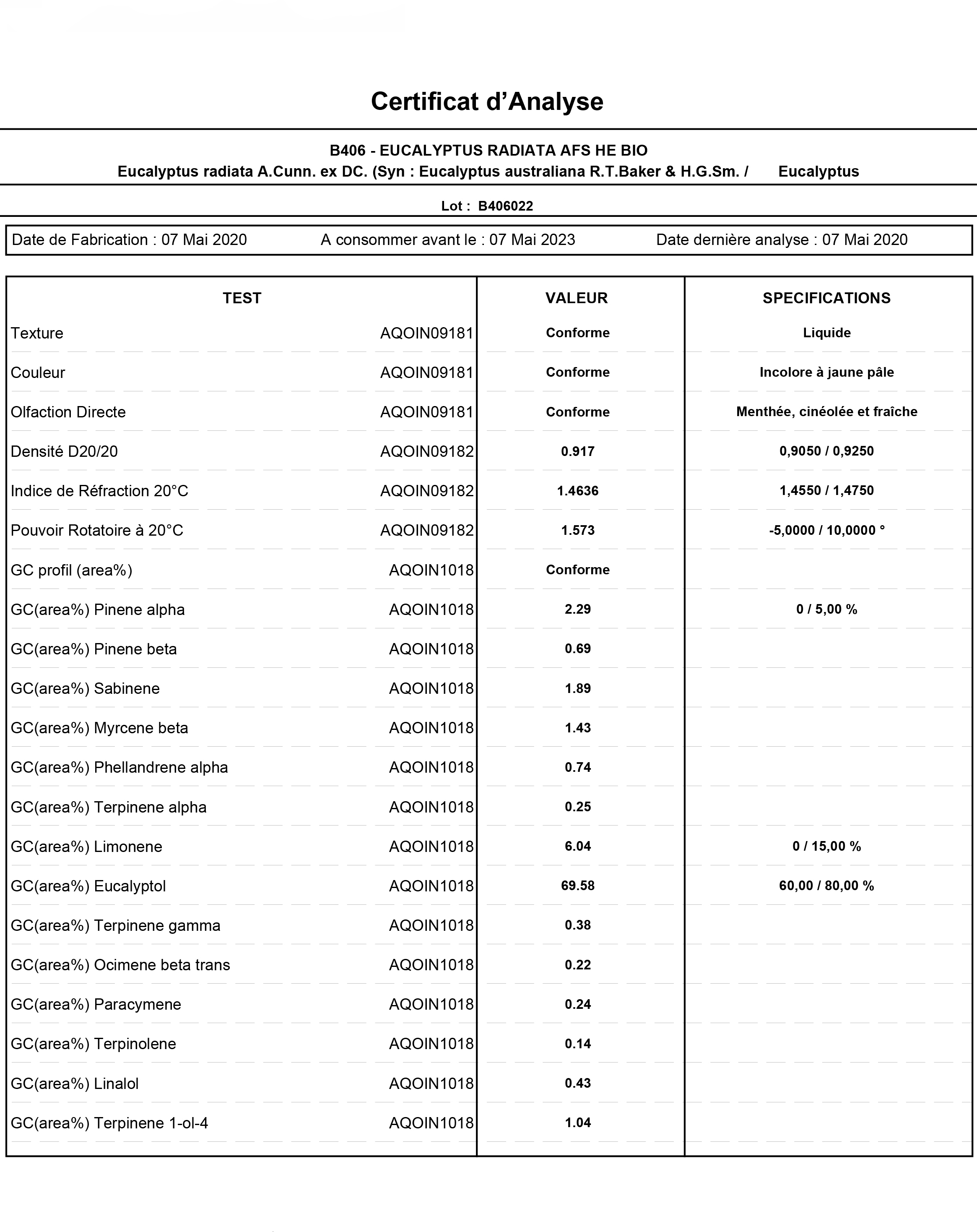 有機澳洲尤加利精油檢驗報告