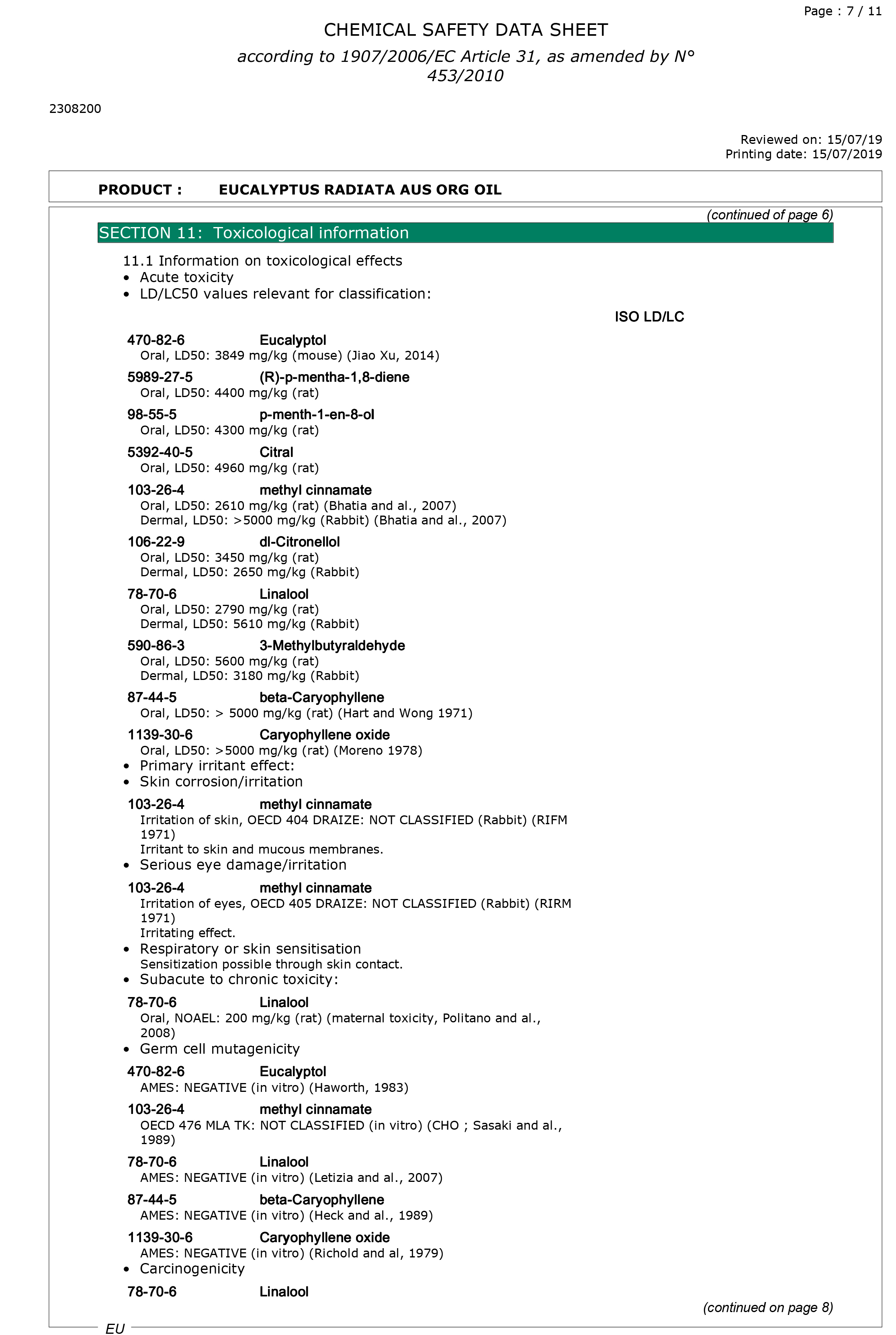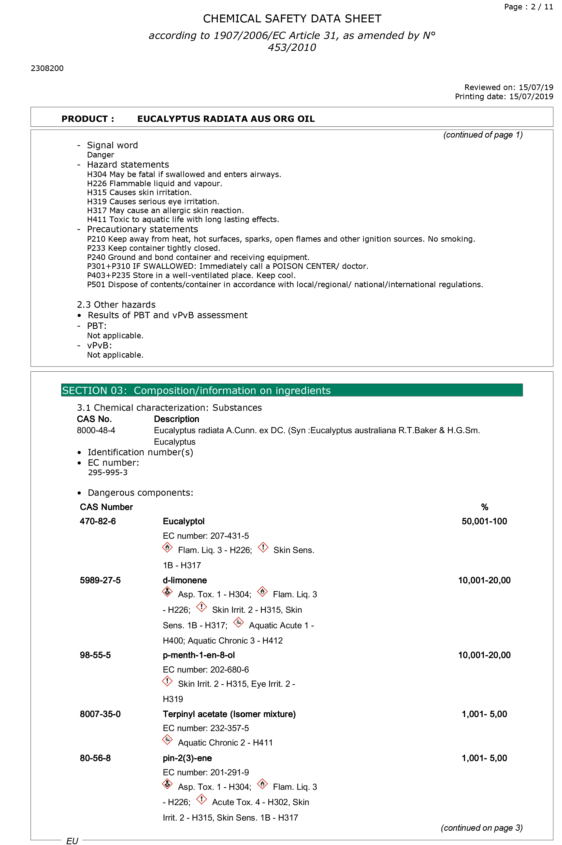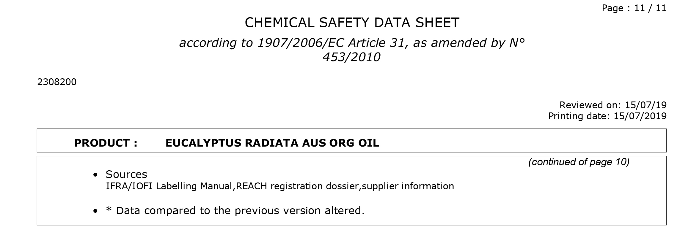 有機澳洲尤加利精油檢驗報告