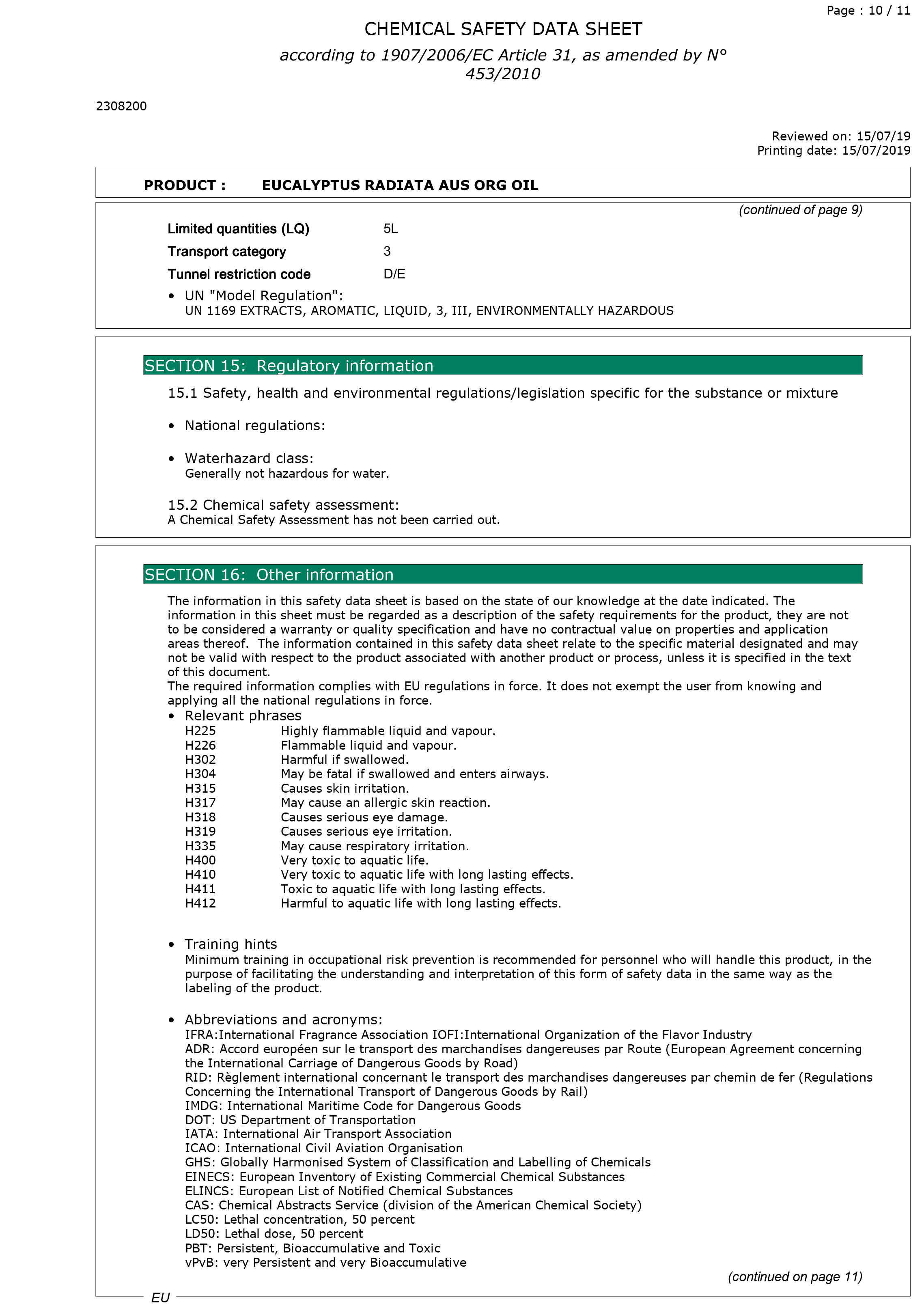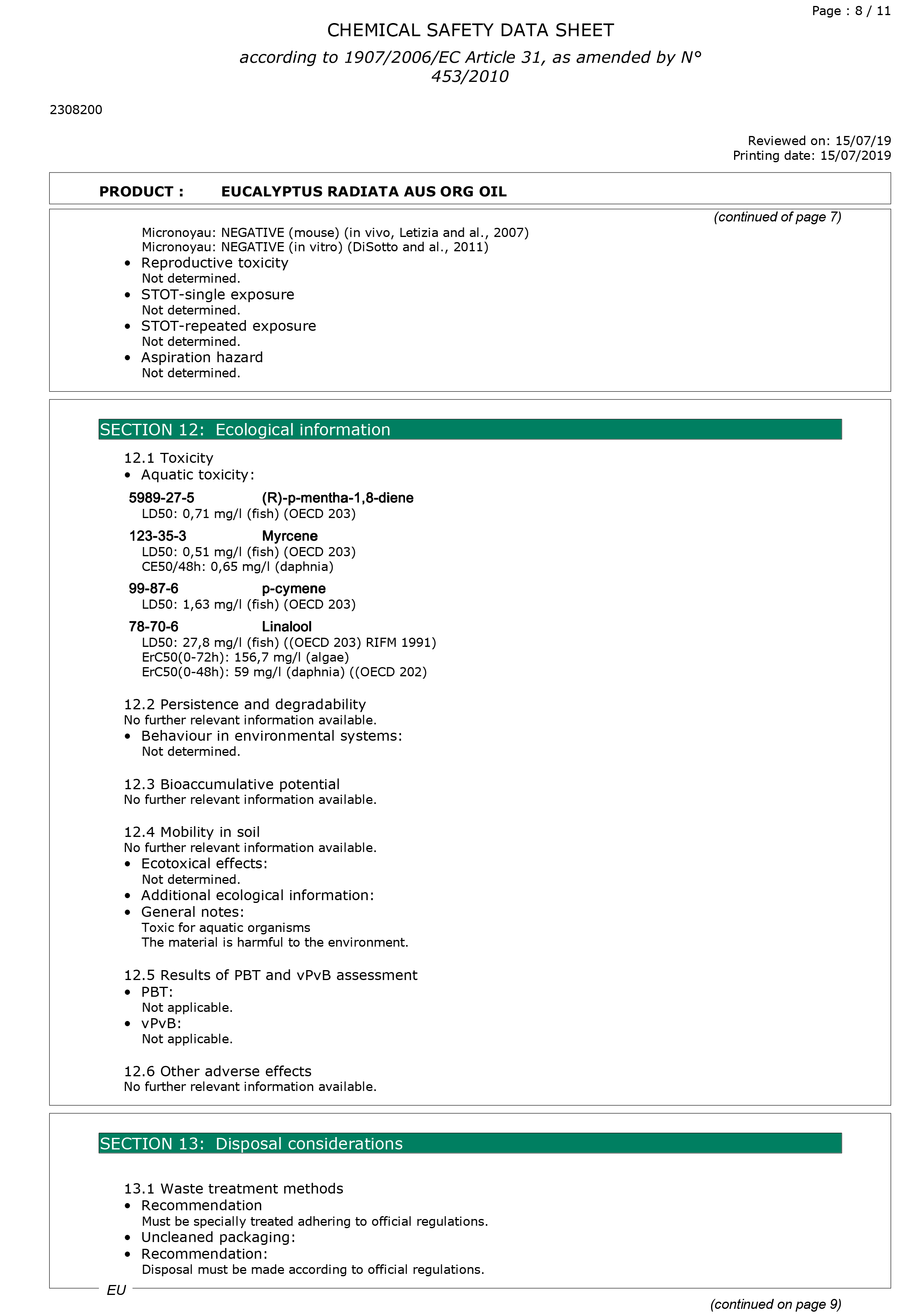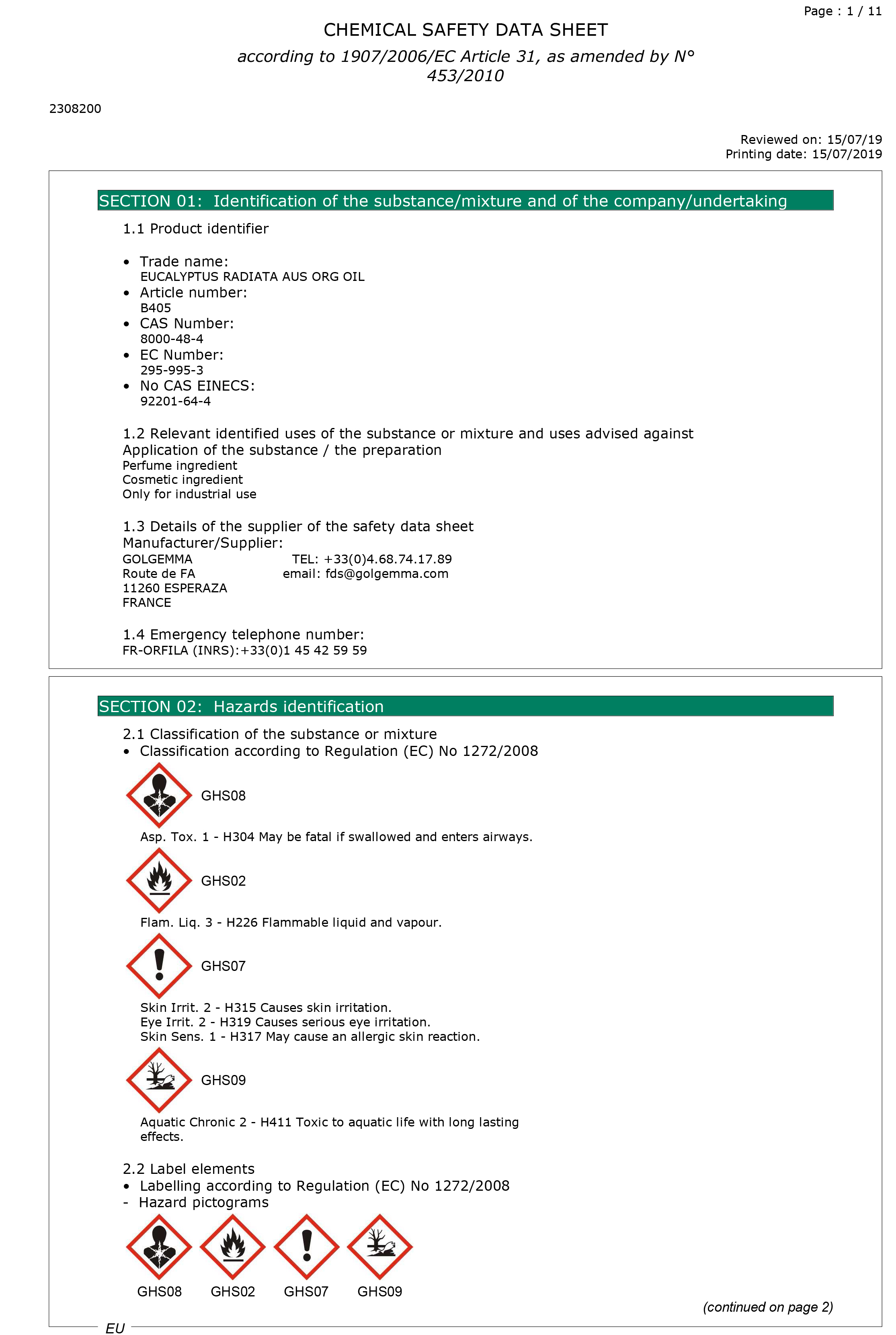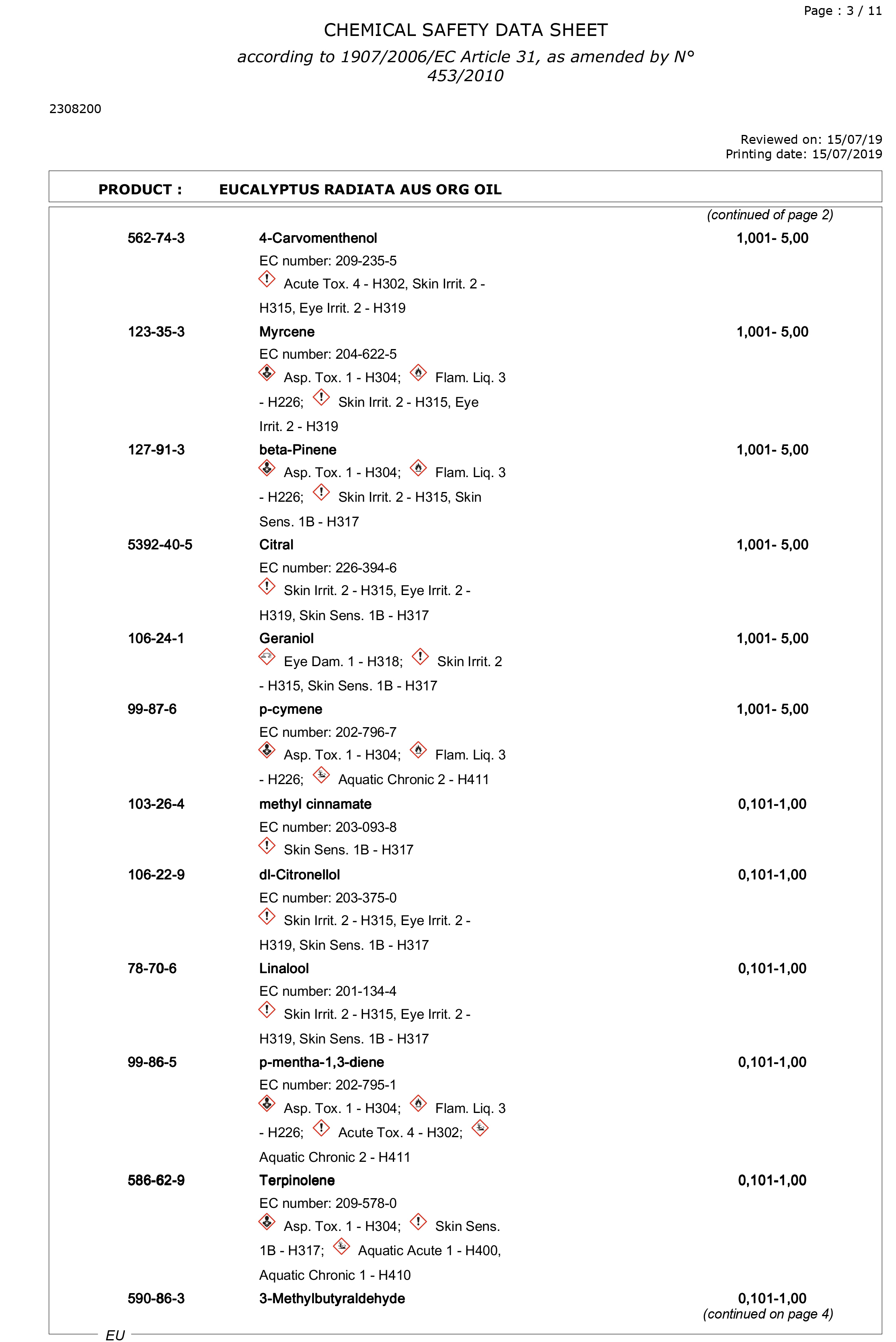 有機澳洲尤加利精油檢驗報告