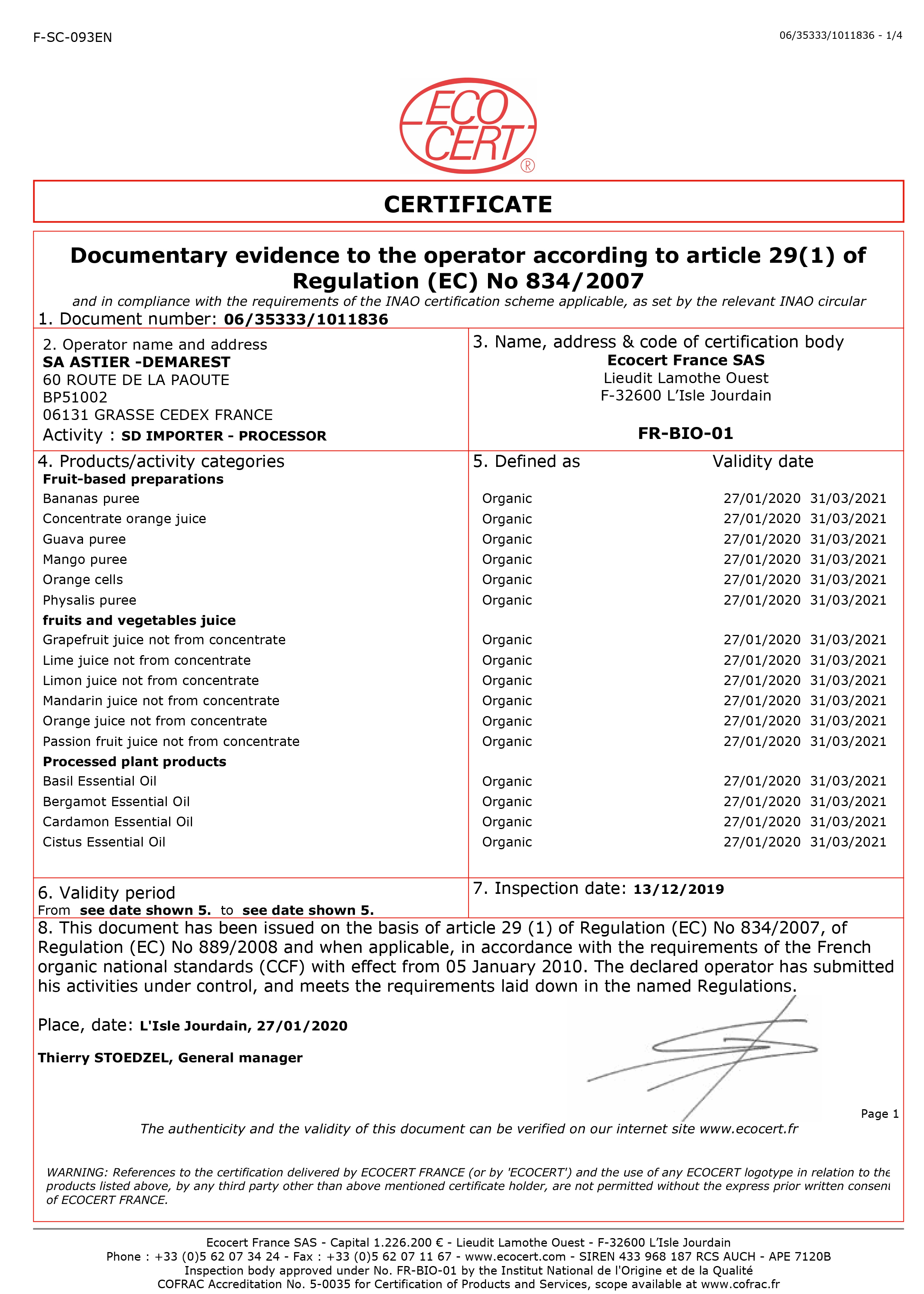 在每一份有機認證的報告當中,都可以透過文件編號(Document number)在ECOCERT的網站中,查詢到經認證的配合農場,及其認證的品項。