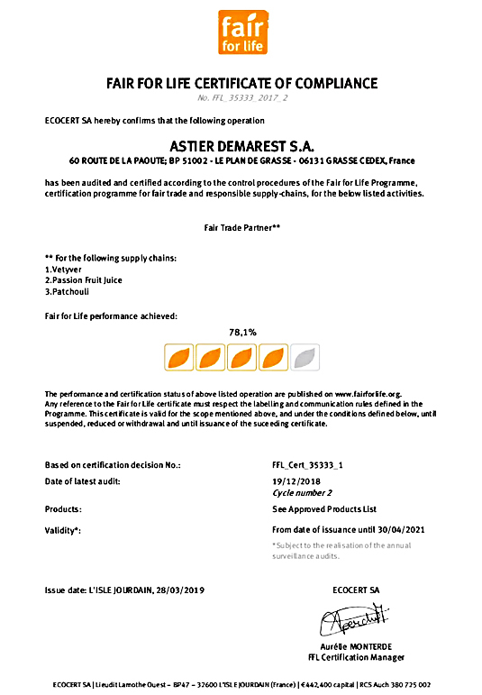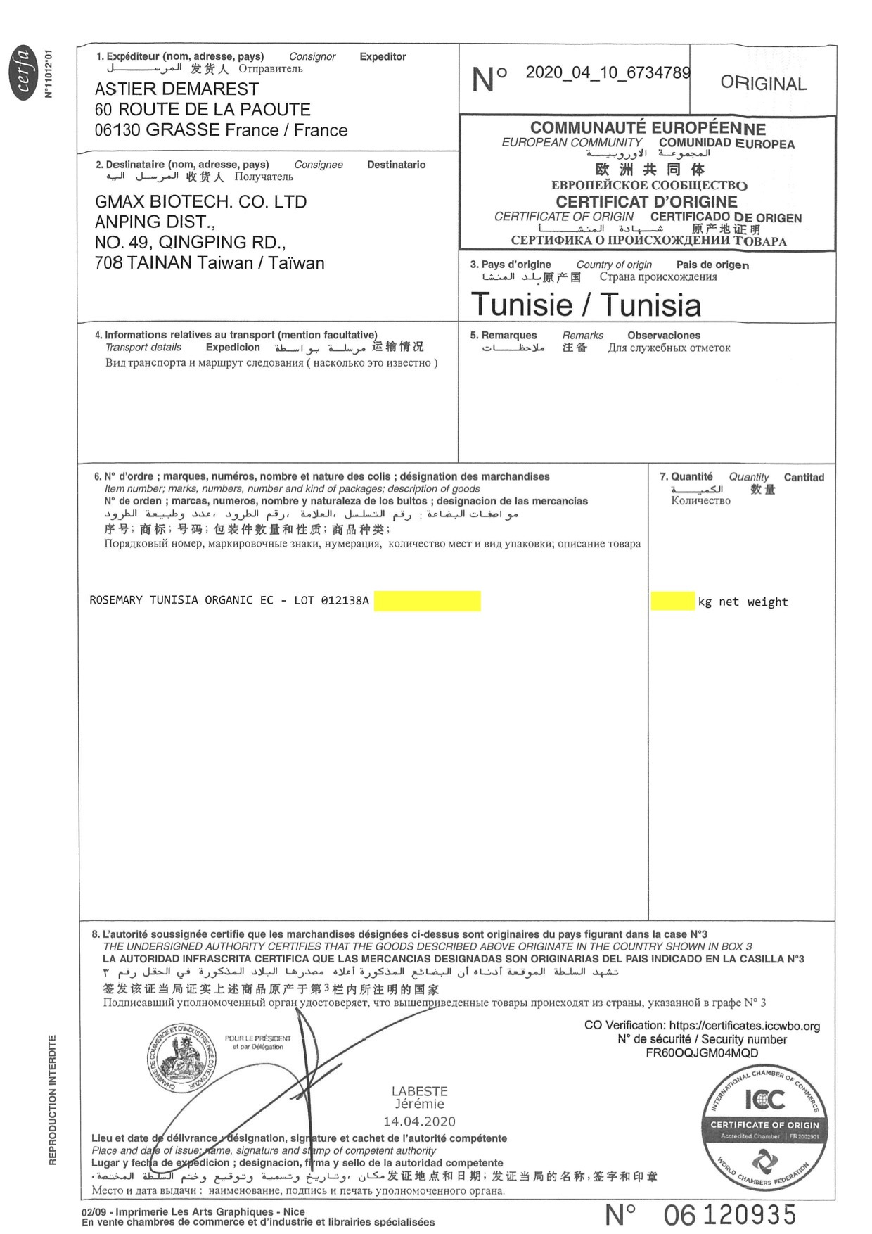 產地證明是由法國官方核發之文件,用以證明精油植物的來源產地,避免來路不明的精油,或是混充不同品種植物。